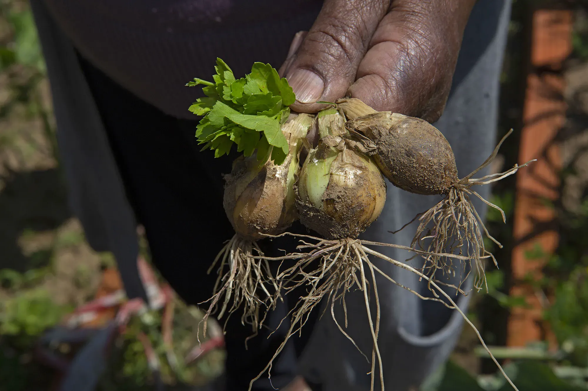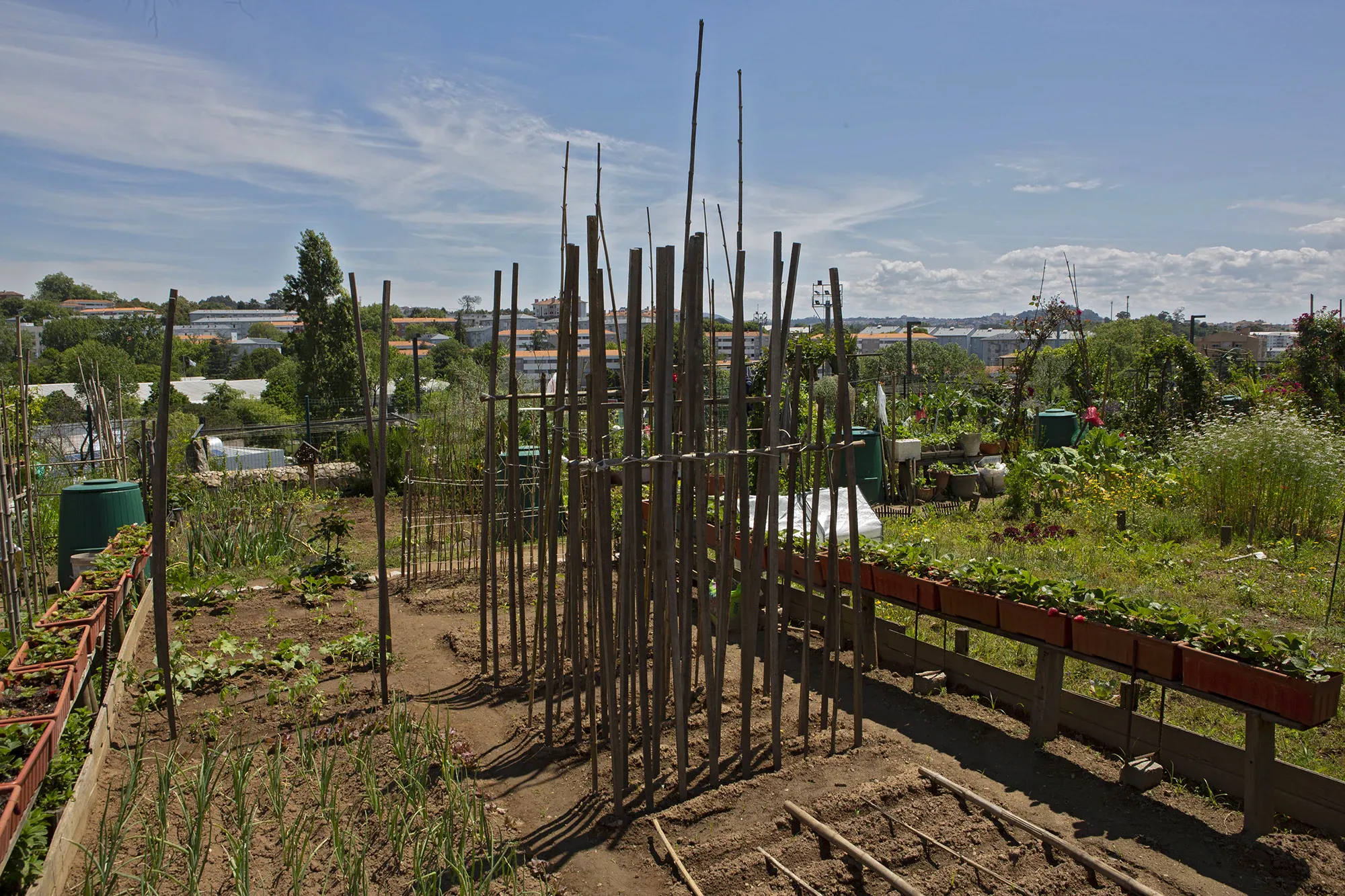 O “por ali” a que se refere Gilberto é a Horta da Oliveira, a maior horta municipal do Porto, vizinha do Parque da Alameda de Cartes e do Complexo Desportivo de Campanhã. Nascida em 2017, no âmbito do projeto Horta à Porta, da Câmara do Porto em parceria com a Lipor, a horta está dividida em 99 talhões, distribuídos pelos fregueses que requisitaram um cantinho para as suas plantações. Há algumas regras a cumprir: são proibidas as monoculturas e a agricultura praticada deve ser em regime biológico. Daí cada talhão ter o seu respetivo contentor de compostagem, para renovar e nutrir o terreno.