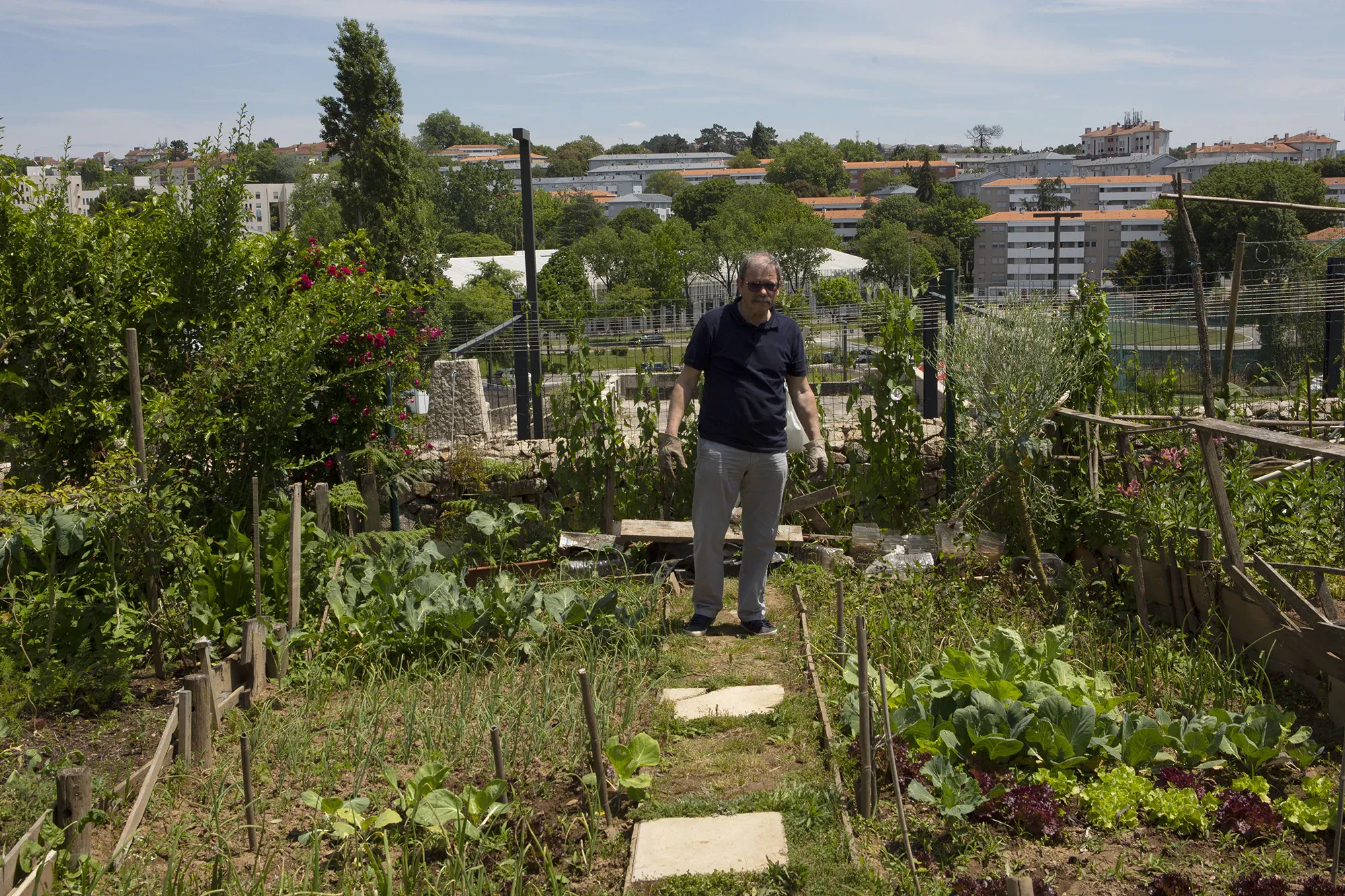 “Isto é o que faz a terra fofinha”, diz Gilberto, mexendo a sua compostagem cheia de couves, cascas de ovos, palha e “pastéis de Belém” do Carmo. “Não sabe o que é?”, pergunta malandro, para logo responder, “é o estrume de cavalo do quartel”, e solta uma gargalhada no ar que se mistura com o som do rádio de um vizinho seu. Ouve-se Playback de Carlos Paião, as pegas a cantar, a sinfonia de uma rotina que se repete e que lembra os tempos de uma Campanhã rural, em que se levava a imagem de Nossa Senhora de Campanhã em procissão até ao centro da cidade, para pedir colheitas férteis.